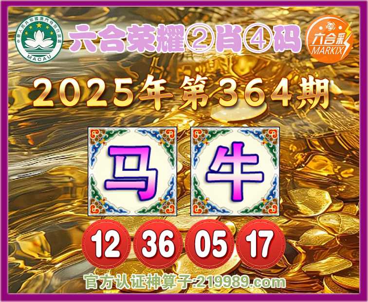 364期:『六合荣耀』 ♥️②肖④码♥️【牛】【12.36.05.17】开:马12