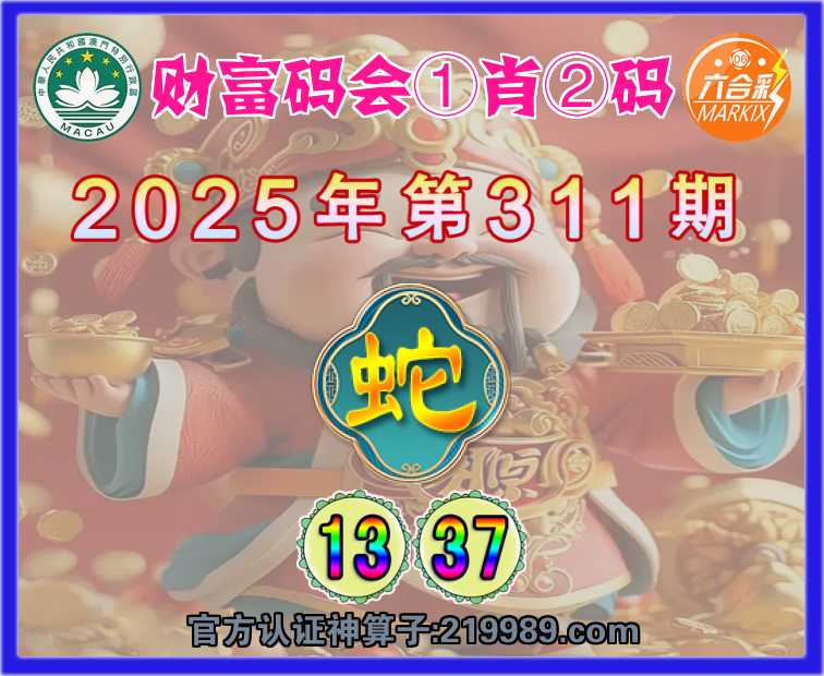 311期:《财富码会》 ☝️①肖②码☝️【】【13.37】开:蛇37