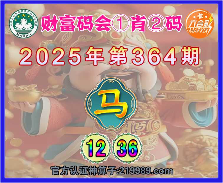 364期:《财富码会》 ☝️①肖②码☝️【】【12.36】开:马12